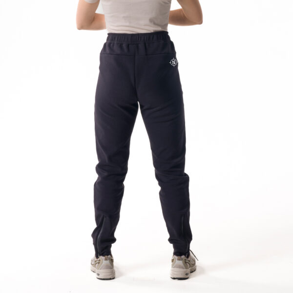 Met een verstelbare tailleband/ Rits midden achter bij de enkels.